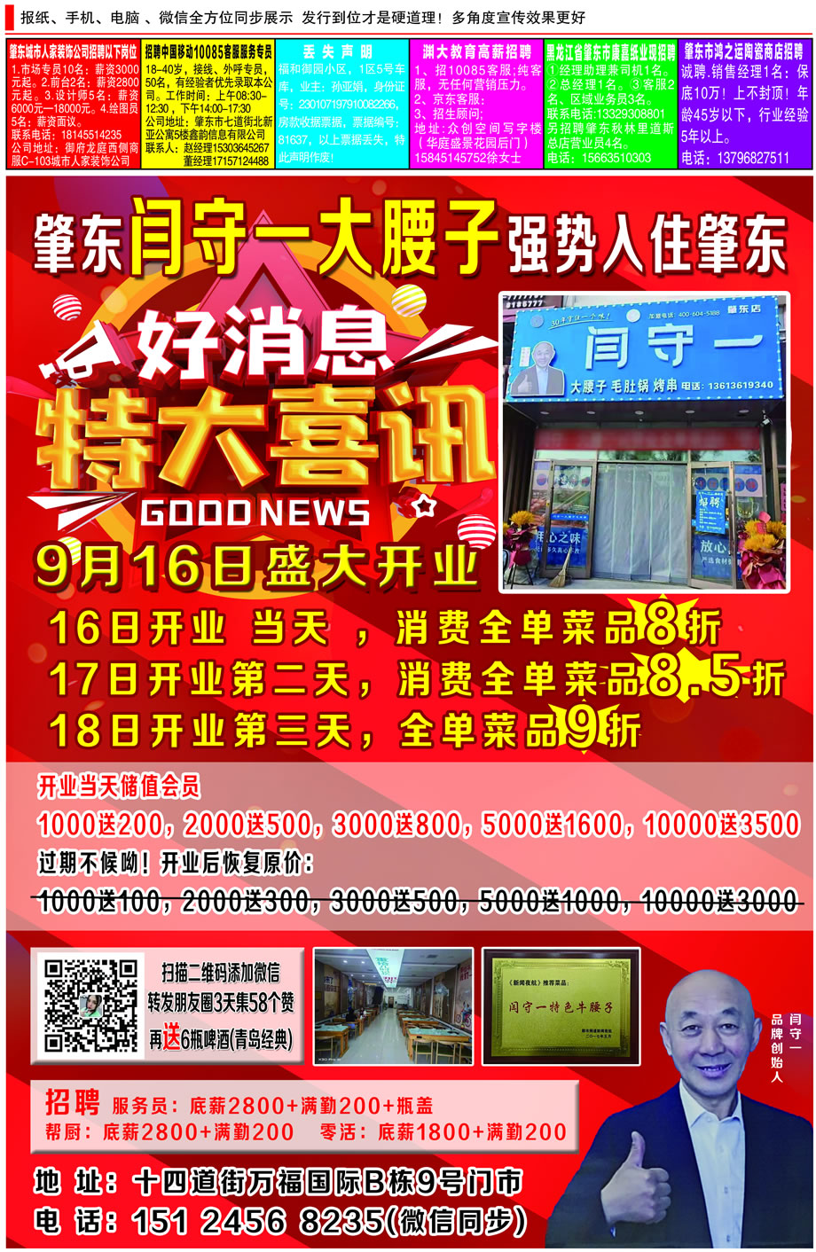 十七道街老一中南門對面:老板發福利了!