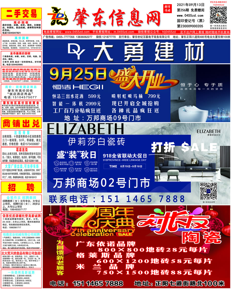 肇東信息網DM報紙2021年9月13日第256期