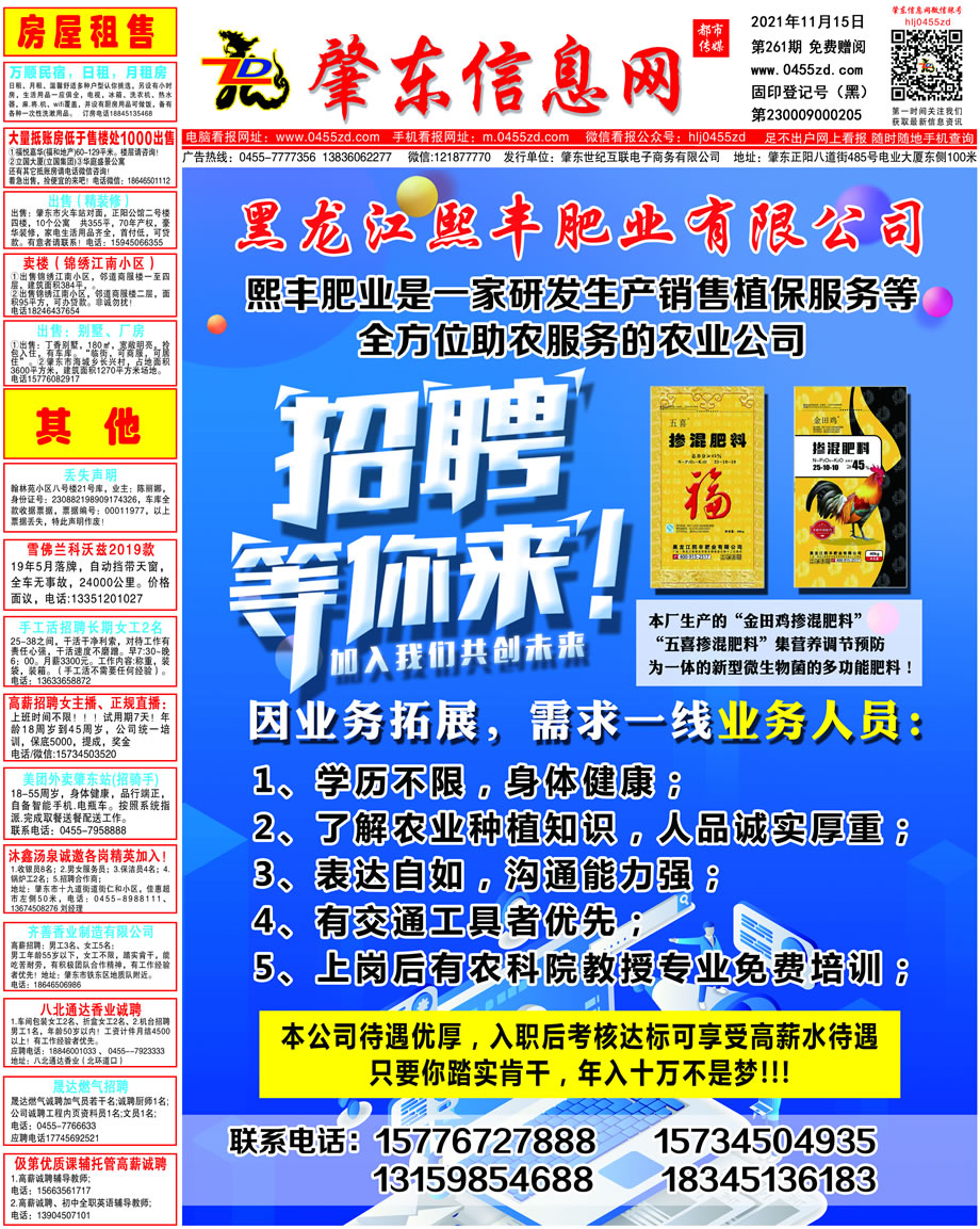 肇東信息網(wǎng)DM報紙2021年11月15日第261期