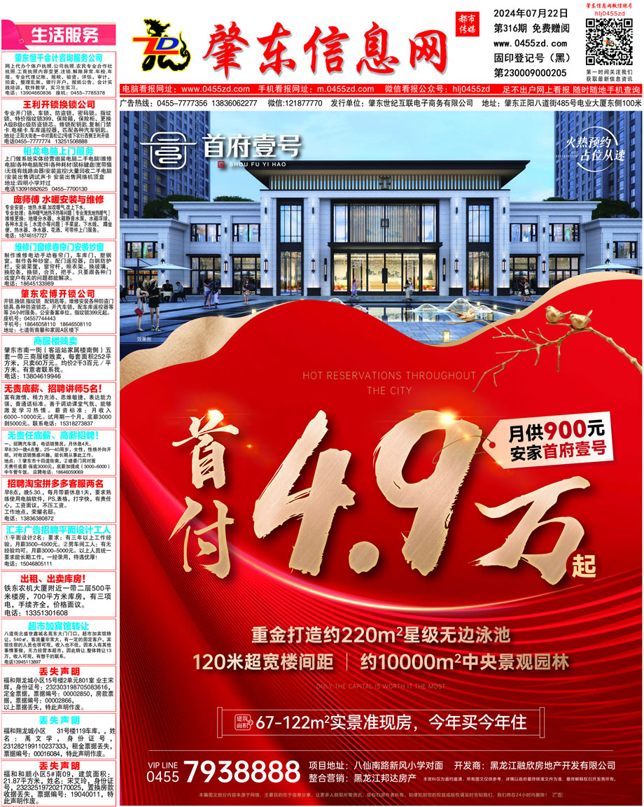肇東信息網DM報紙2024年7月22日第316期