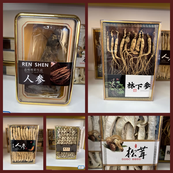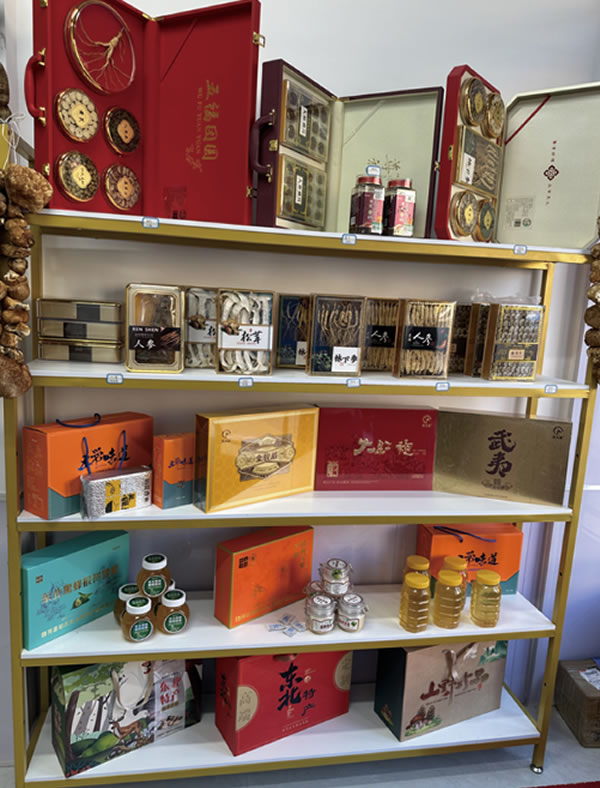 純東北椴樹雪蜜、五味子、枸杞、松茸、林下參、人參、鹿茸片、稻花香米、各種茶葉等應有盡有。