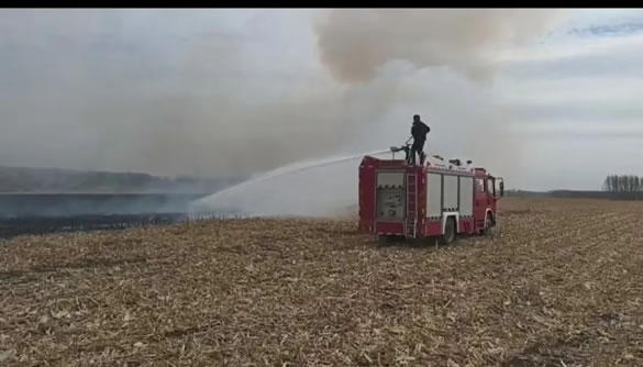 近日,肇東市五里明鎮五里明村西北側的玉米地突發火情,火勢迅猛,已蔓延至村民家院墻,情況危急。接到警情后,五里明派出所迅速響應,指派工作人員李華龍、王宇、王磊、祝永奪四人駕駛消防車迅速前往現場進行救援。
