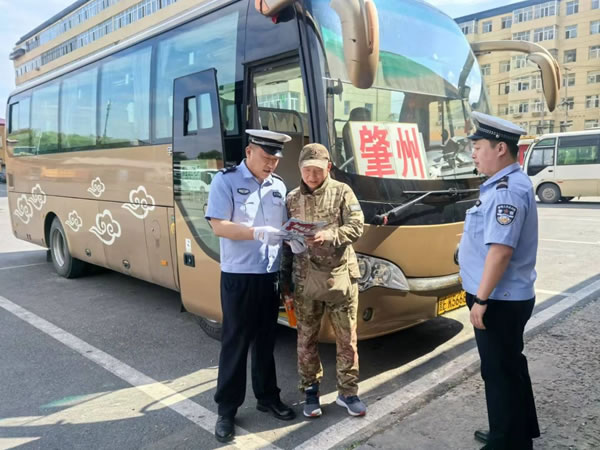 肇東公安交警走進客運站開展“一盔一帶”交通安全宣傳活動